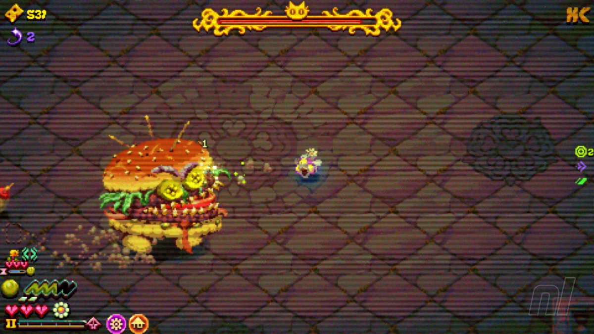 Mostly playing out like a twin-stick shooter, you explore each randomly-generated stage, defeating enemies and searching for benefits, like XP, cheese, and useful items.