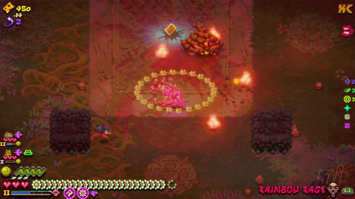 The game is fast-paced and quite demanding. You can't be too precious with your Morsels, as they'll die anyway, but reckless play is punished thanks to combat rooms that border on bullet hell, requiring precision and a knowledge of how to play your current character.