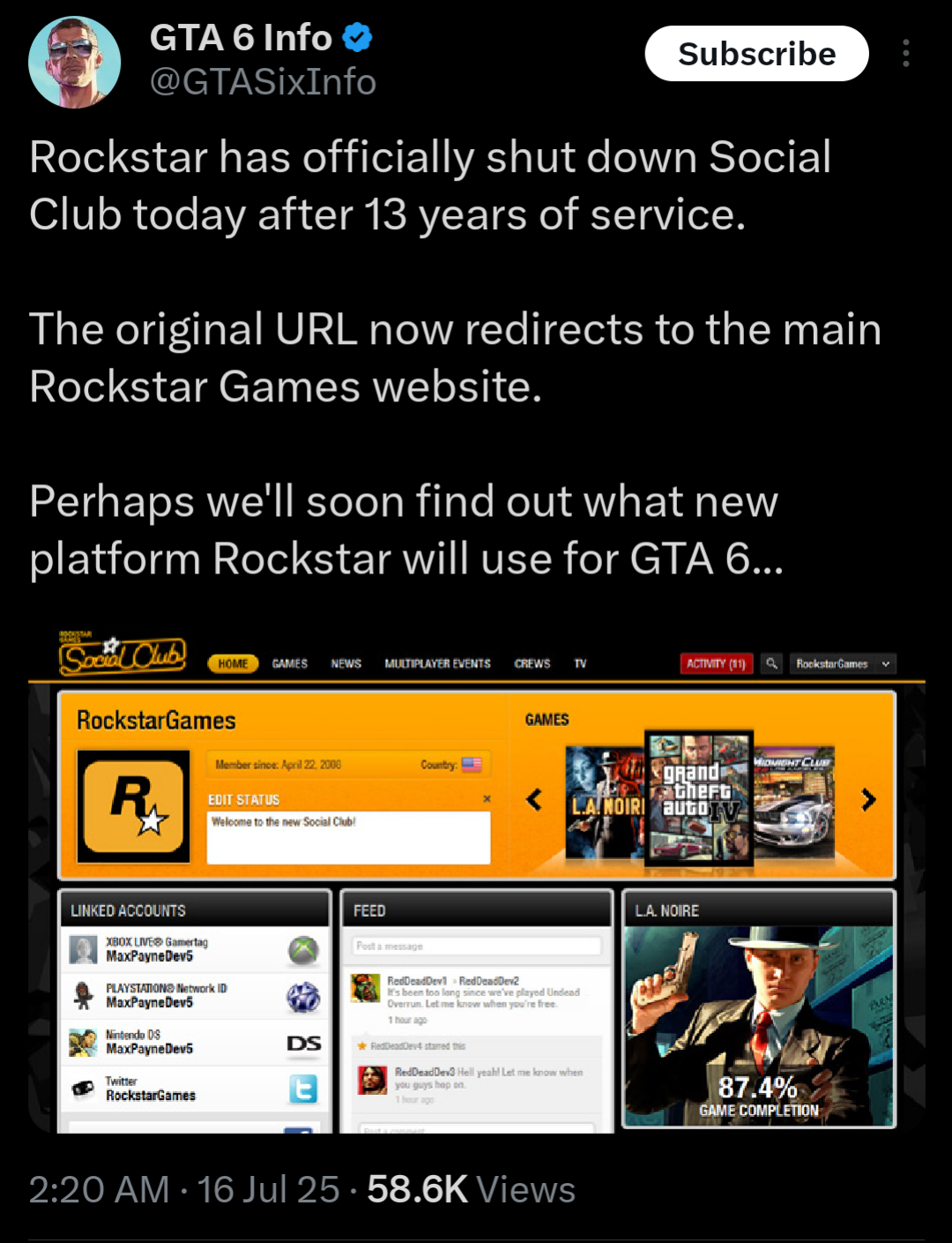 Read more about No more Social Club Gaming Blog No more Social Club Social Club is officially gone :( 0 Comments 21 views Rockstar in GTA November 2Nov 2