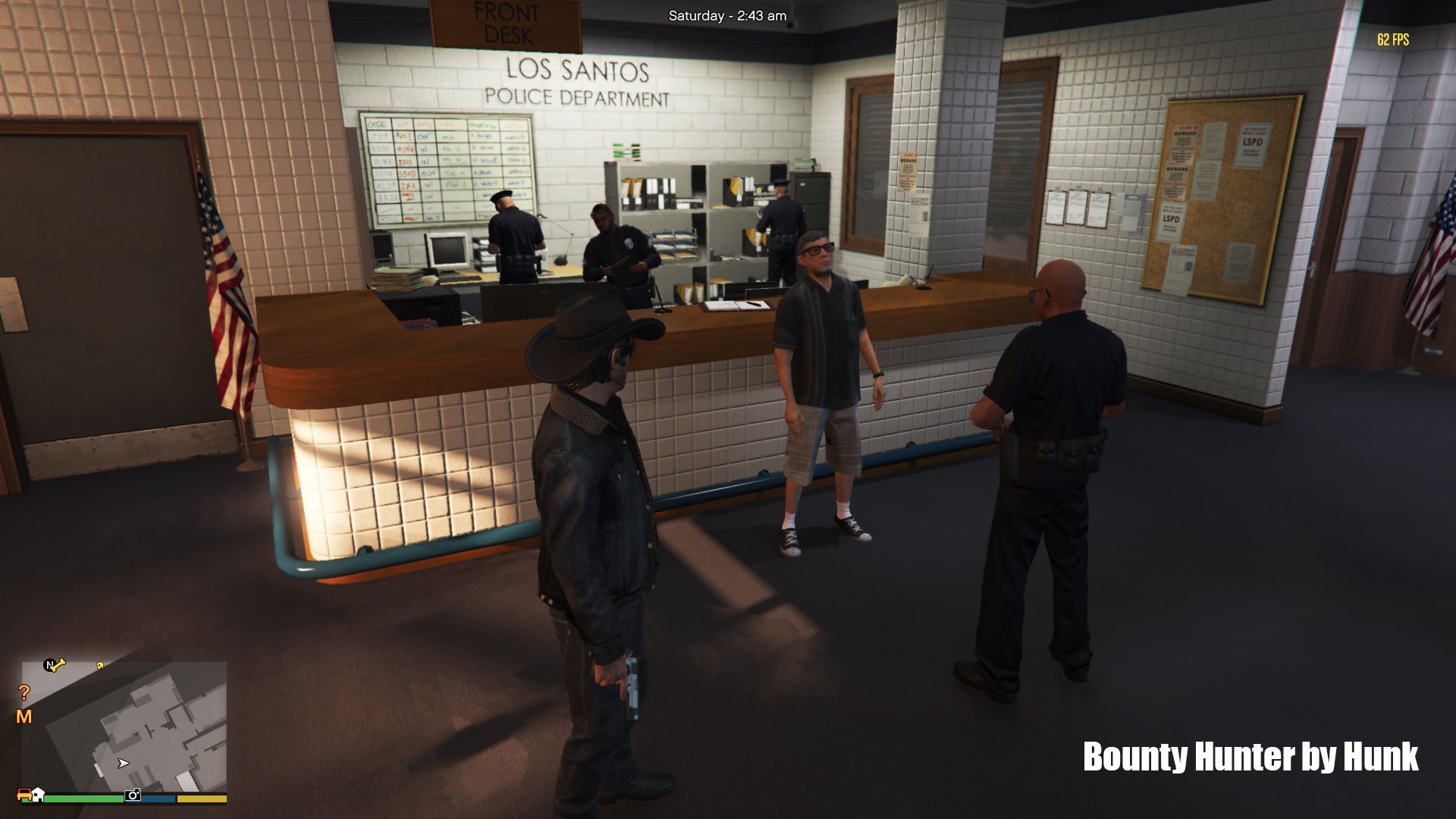 This script adds bounty hunt in the game. You can call contact "Bounty hunt" to start hunting. Once you recieve order, you need to hunt your target at random location. Once you found you target it will try to shoot at you, fight you, run from you or just surrender. If target decides to run or fight just shoot at limbs to make it surrender. After target is surrended, just come closer and put cuffs on it. Then convoy your target to LSDP Police station to get your reward. Also you can search your target's pockets for money or weapon. To do so, once your target is cuffed, come closer and push "attack" button to put target on the ground then press "Talk to random ped" button and character will start search.
