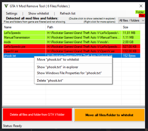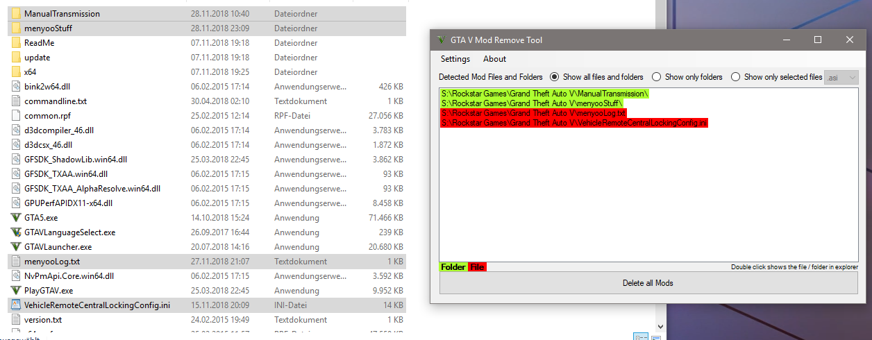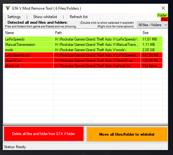 This tool helps you to detect all mod files and folders and gives you the chance to delete all mods.