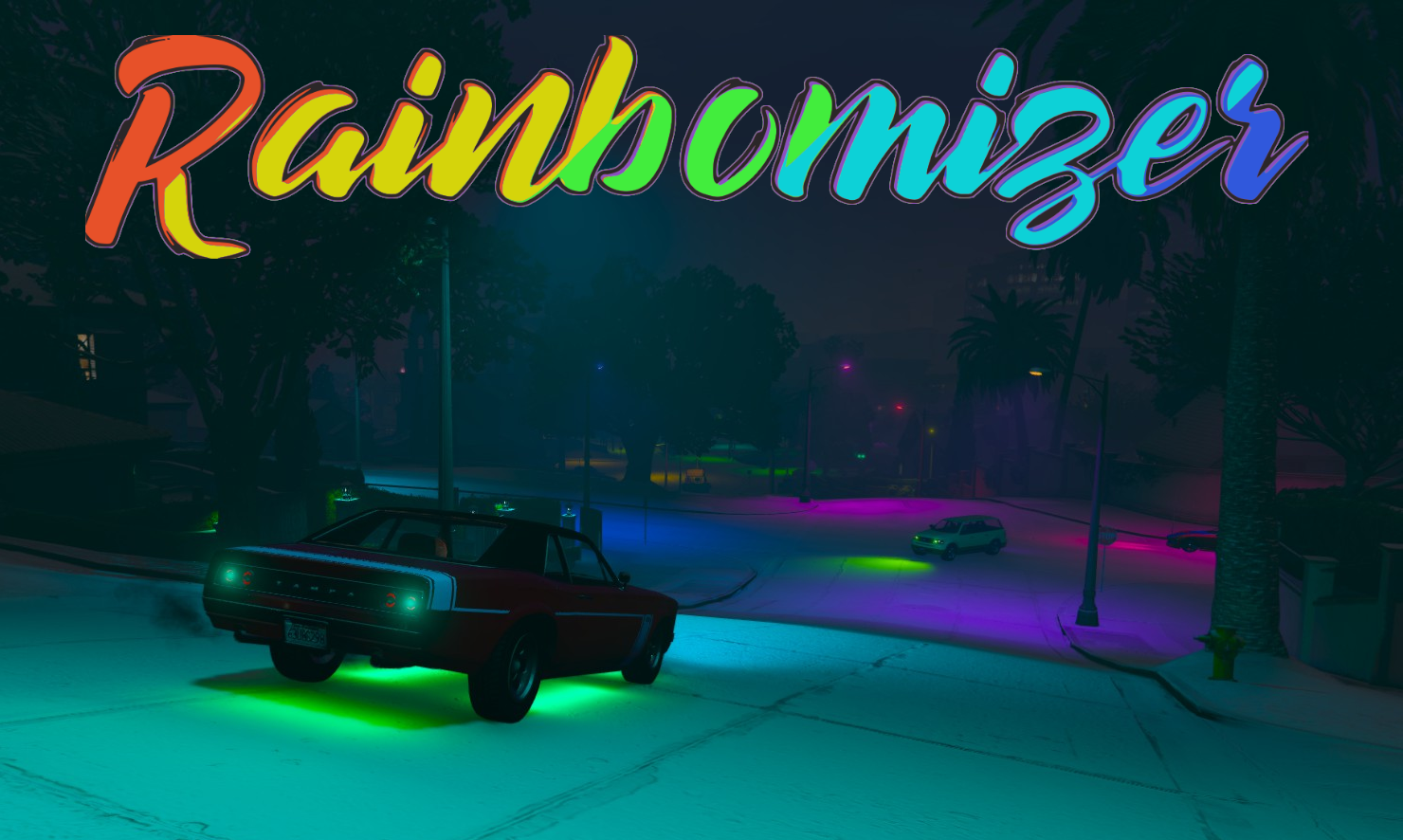 Rainbomizer is a set of mods for Grand Theft Auto games that randomize major aspects of the game. Lists of things randomized include the missions, the traffic, voice lines, cutscenes among other things!
