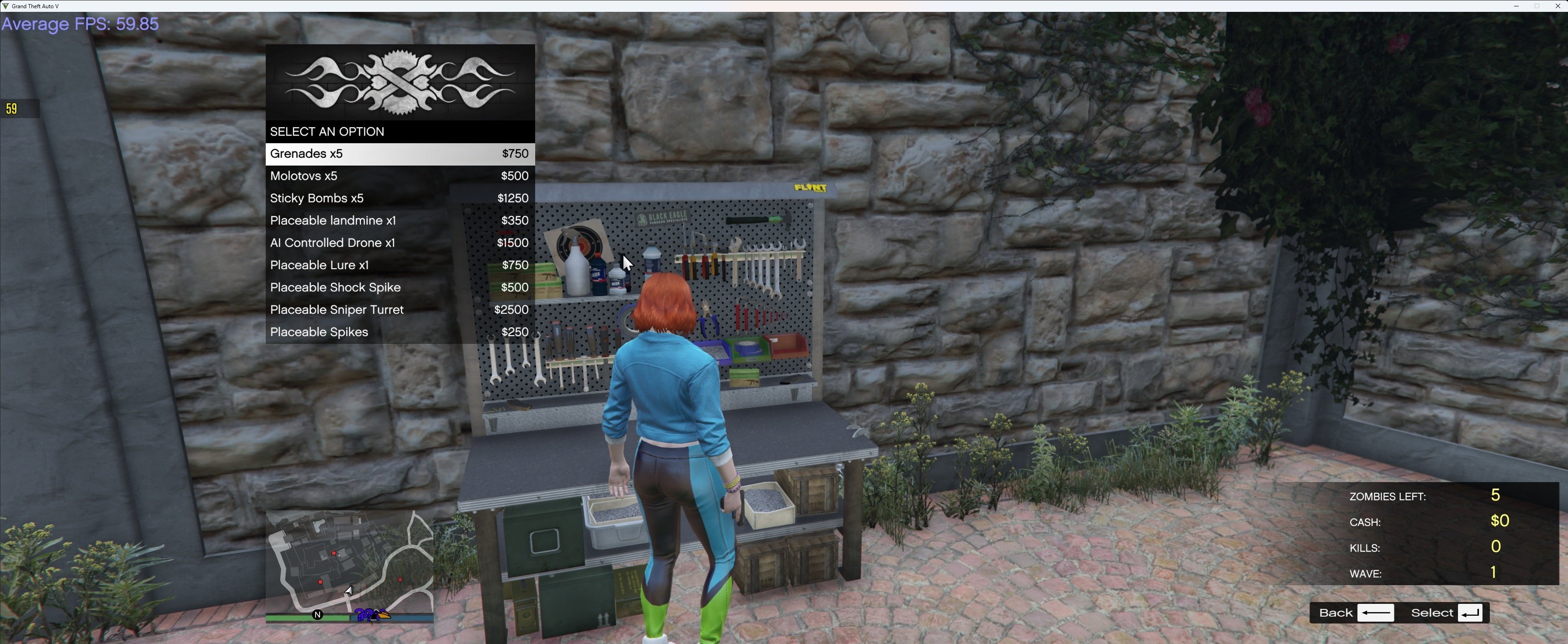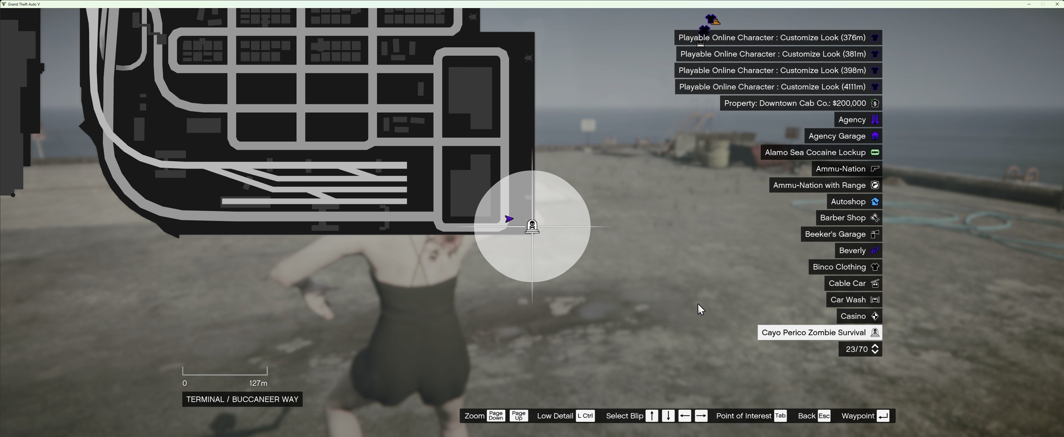 6 Launch game, go to the grave symbol at the docks to interact with the start Cayo Perico Zombie Survival Menu